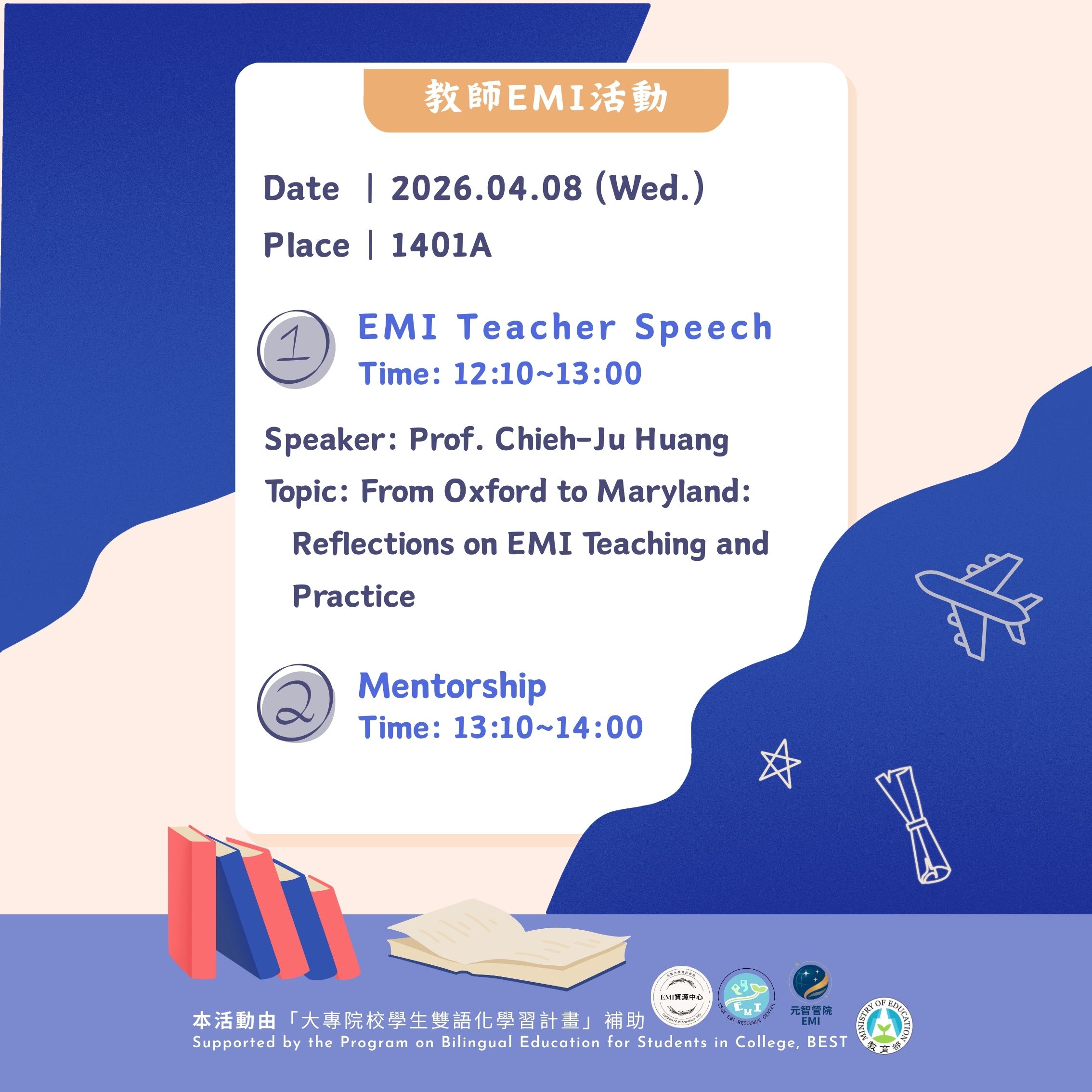 - [活動訊息]資訊學院EMI教師講座及會後活動 | EMI Teacher Speech 2026年3月17日