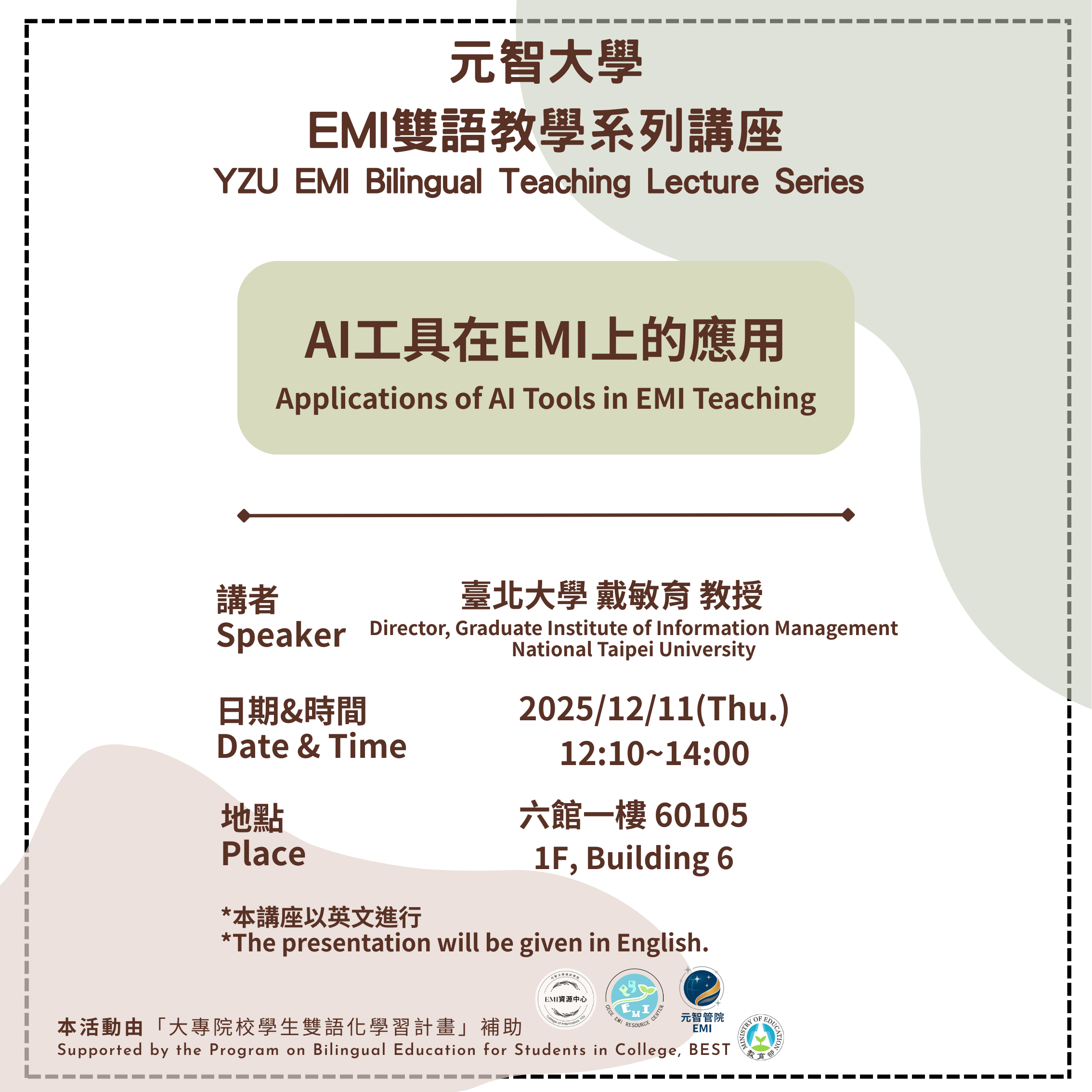- [EMI獎勵金/EMI Subsidy]英語檢定EMI學伴開始報名囉~ Registration for the English Test EMI Study Partner is now open~ 2025年12月19日