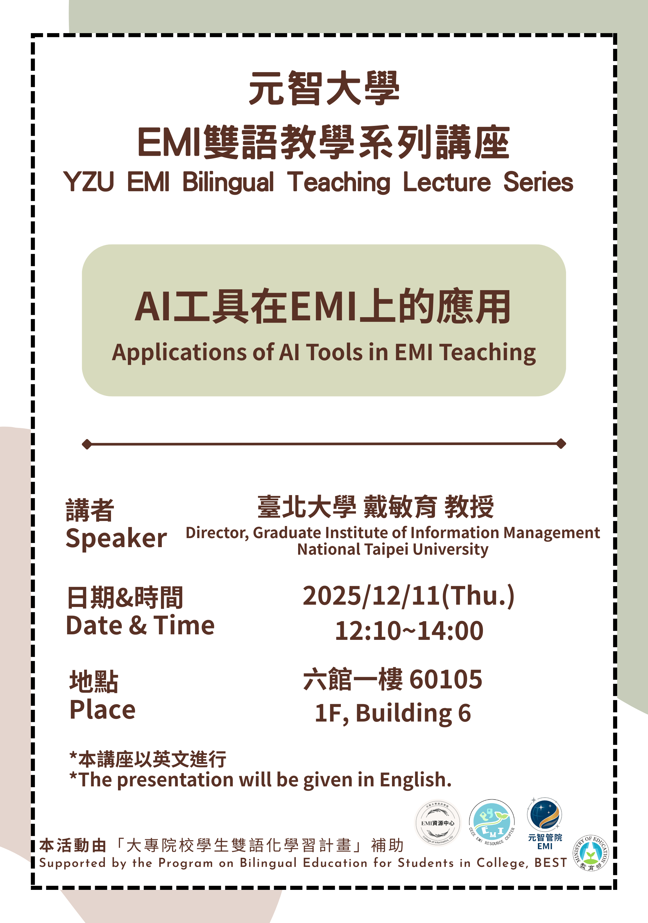 為增進教師英語授課技巧,資訊學院雙語教學推動資源中心辦理「EMI雙語教學系列講座」,邀請專家學者到校分享,歡迎一起參加!